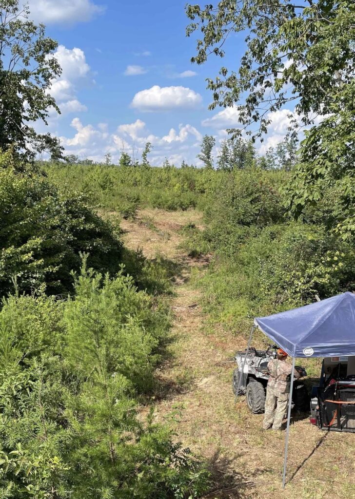 Our biggest battle on this property is access. This property is dense and thick with a lot of new growth which has its advantages and disadvantages. It holds game well providing shelter, food sources, and protected travel corridors for deer and other game. It helps our deer grow big due to the lack of threats and pressure. But it can make the hunting and adventuring a little tough through the briars and the brambles. After many hunts, our sportswomen come back with scrapes and scratches when they try to adventure deep. Our hope for the coming years is to do more clearing for better roads and access.
